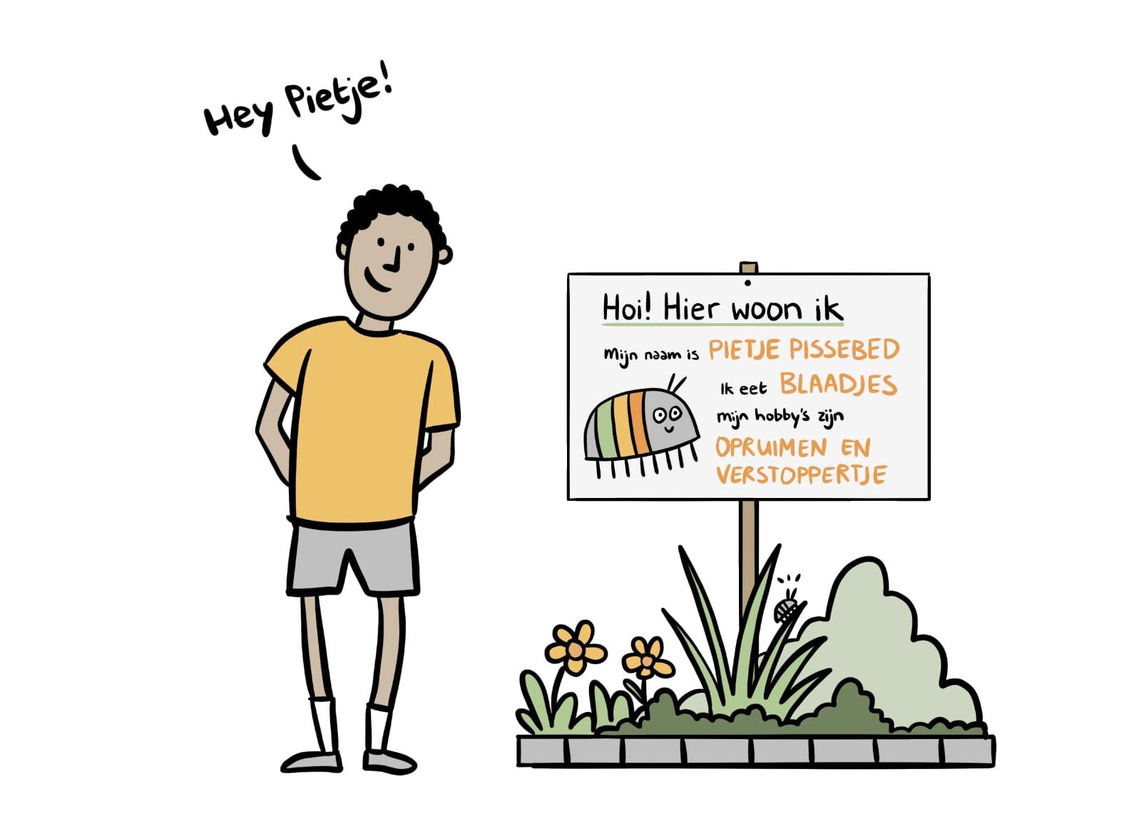 Wie zijn de kleinste buren in jouw straat? Ik ga met jong en oud op pad om insecten en andere kleine beestjes te leren kennen. We zoeken bijvoorbeeld wekelijks met een groepje mensen naar de kleinste bewoners van de tuin van het Wijkpaleis. Dat is niet alleen leuk, leerzaam en ontspannend: we brengen ook de biodiversiteit van de tuin in kaart én gaan tuinieren voor meer kleine dieren.
